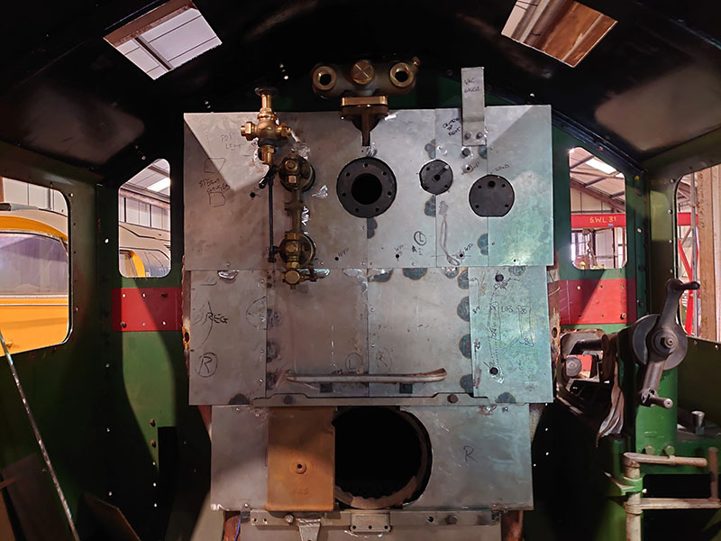 One of the jobs being completed while the boiler is back at Didcot is manufacturing of the cladding sheets, or cleading to give it its official name which will cover the boiler and its lagging. Recent photos from Didcot show this underway. The backhead sheets include markings of what the various flanges will be fitted with and is a good view of the single gauge glass, which was one of the GWR's individuality features.