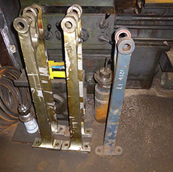 The outer lugs that are on the top of the expansion link in the photo fit between the forks of the eccentric rods. The other end of the eccentric rods are bolted onto the eccentric straps using the bolts on the left hand side of the straps in the photo (the second bolt on each strap is hidden behind the cloth).