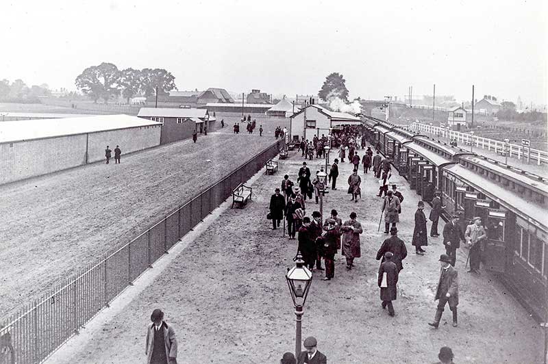 Newbury Racecourse station was opened in 1905, the same year as the racecourse itself. It saw intensive use on race days, but only as recently as 1990 was it provided with regular stopping services to cater for nearby development. In its heyday, the station had three footbridges connecting the four platforms of which the southern two were devoted to race day traffic. There were carriage sidings nearby and a turntable to save locos having to run light engine to Reading in order to turn. Only 53 miles from Paddington, Newbury Racecourse specials always had great kudos and as late as October 1962 BR Western Region were using the remaining ‘Kings’ on these workings. By then these locos had lost their traditional West of England and Birmingham duties to the new diesel hydraulics.