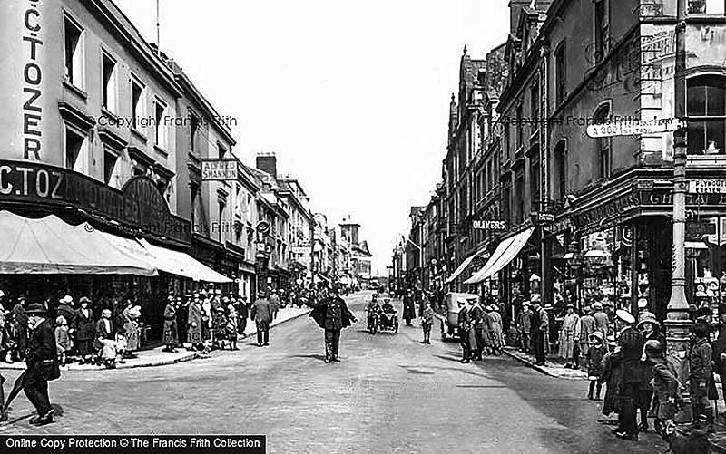 Boolds of Devonport’s china and glass shop is on the right of the picture, which includes a policeman in cape directing traffic at the crossroads. A Francis Frith photograph dating from 1924